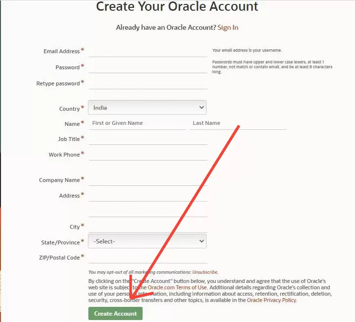 STEP 4: Next, you can redirect the oracle website. If you have already an account in oracle you will log in and continue. Unless you don’t have an account sign up for your account and login.