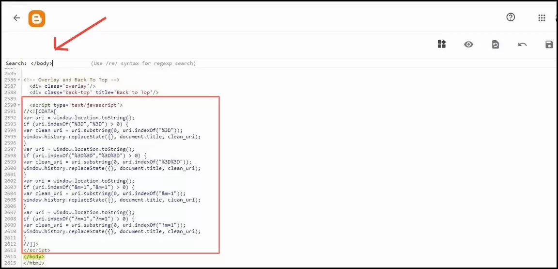 STEP 3: Press Ctl+F And Find The </body> Tag.