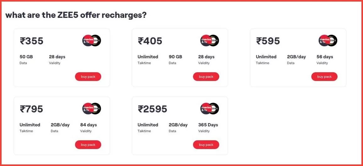 Go to check the Vodafone+Zee5 Pack with premium subscription Click Here